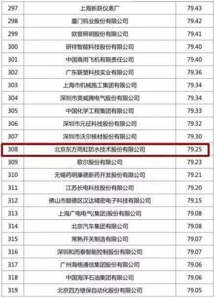 近日,在廣州舉辦的2019中國市場營銷國際學(xué)術(shù)年會暨中國創(chuàng)造展主論壇活動中,中國企業(yè)專利500強榜單首次發(fā)布,東方雨虹以專利實力79.25分進入榜單。