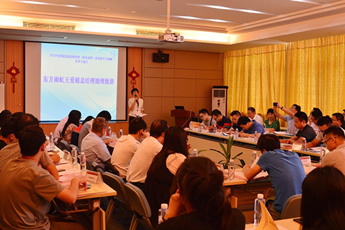 會上,廣東東方雨虹總經理助理王愛超介紹了東方雨虹的基本情況及發展歷程,同時提到了企業發展壯大及日常檢測中面臨的問題,并與在場人員進行探討。
