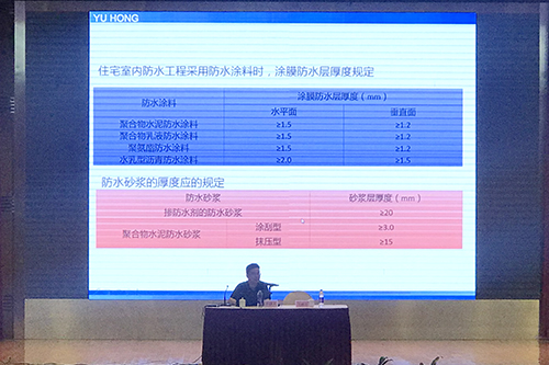 會上,深圳東方雨虹總工程師吳光文以《室內與外墻防水工程施工質量通病案例分析》為題做分享,他結合規范標準、細部節點處理、工程案例等對內外墻防水要點進行了深入淺出的分析。 此次培訓是旨在提高企業重視工程質量意識、增強質量興企、質量強市的管理理念。東方雨虹作為主講單位受邀出席,是對公司實力、經驗的充分肯定。未來公司也會繼續以質取勝,強化自身,努力打造更多的精品工程。
