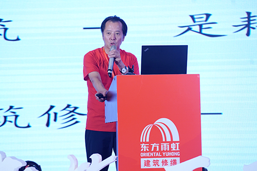 東方雨虹TPO支持服務(wù)平臺總監(jiān)王宏、MS膠支持服務(wù)平臺總監(jiān)朱衛(wèi)如、透汽膜支持服務(wù)平臺總監(jiān)葛新標、東方雨虹華砂公司總工程師嚴興李、工渠(中國)總工程師林宏偉、建筑修繕副總工程師陳剛、德愛威副總工程師錢義和大客戶技術(shù)工程師周孝書分別從金屬屋面、裝配式建筑、透氣膜與隔汽膜的應(yīng)用、華砂砂漿、建筑外墻與地坪翻新、3D模型分析以及修繕公司的技術(shù)競爭優(yōu)勢等方面作主題介紹。