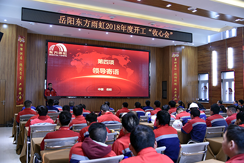 2月26日,東方雨虹青島萊西、岳陽生產基地分別舉辦開工大會,要求員工從新年氛圍中走出來,迅速進入工作狀態。