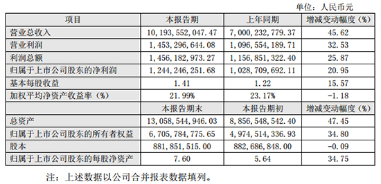 報告期內,公司實現營業總收入10,193,552,047.47元,較上年同期增長45.62%,主要系隨著公司品牌影響力不斷提升,產品銷量同比增長,材料銷售業務和施工服務業務規模均有所增長所致;營業利潤1,453,296,644.08元,較上年同期增長32.53%,利潤總額1,456,182,973.27元,較上年同期增長25.87%,歸屬于上市公司股東的凈利潤1,244,246,251.68元,較上年同期增長20.95%,基本每股收益1.41元,較上年同期增長15.57%,主要原因是報告期公司營業狀況整體向好,主要產品的銷售收入、施工收入繼續增加,毛利潤逐步提高所致。報告期公司財務狀況良好,截止2017年12月31日,公司總資產13,058,544,946.03元,較本報告期初增長了47.45%,主要是公司經營規模擴大所致。