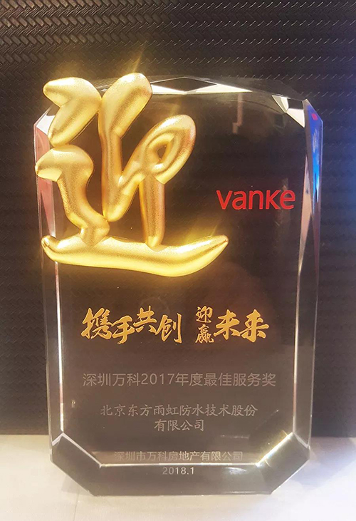 此次獲獎既是深圳萬科對東方雨虹防水系統服務品質的肯定,也是雙方精誠合作的見證。東方雨虹將繼續堅持高標準、高品質的誠信經營和服務,助力深圳萬科打造品質工程,為和諧人居貢獻力量。