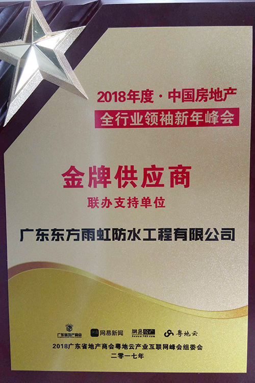 1月12日,由廣東省地產(chǎn)商會、網(wǎng)易房產(chǎn)聯(lián)合主辦的“2018中國房地產(chǎn)全行業(yè)領(lǐng)袖新年峰會暨中國地產(chǎn)冠軍榜及粵地云產(chǎn)業(yè)互聯(lián)網(wǎng)峰會”在廣州南豐朗豪酒店隆重舉行,約500多名政府部門人員、行業(yè)高層等出席本次會議,廣東東方雨虹總經(jīng)理孫福琴應(yīng)邀出席。廣東東方雨虹防水工程有限公司榮獲2018年度·中國房地產(chǎn)“金牌供應(yīng)商”榮譽(yù)稱號。