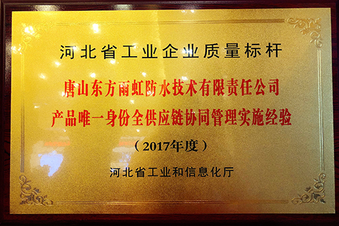 12月15日,2017年河北省工業(yè)企業(yè)質(zhì)量品牌建設(shè)經(jīng)驗交流會在石家莊召開。河北省工業(yè)和信息化廳公布2017年河北省質(zhì)量標(biāo)桿名單,“唐山東方雨虹防水技術(shù)有限責(zé)任公司產(chǎn)品唯一身份全供應(yīng)鏈協(xié)同管理實施經(jīng)驗”光榮入選。廠長馬到原到場領(lǐng)獎并做現(xiàn)場匯報,與參會各企業(yè)進行質(zhì)量標(biāo)桿典型經(jīng)驗交流。