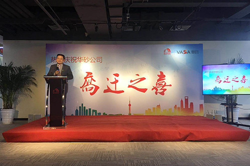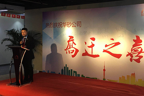 接著,由華砂公司董事長方世畢先生致辭,他感謝了前來祝賀的嘉賓,總結(jié)了華砂公司過去的工作并對接下來的發(fā)展方向做出重要指示,同時(shí)表明華砂總部搬遷到花橋是一個(gè)新的起點(diǎn),華砂公司因砂而生、因砂而美,也必將因砂而走向世界。