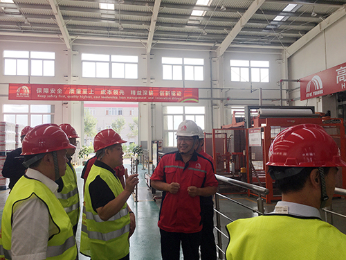 馬到原向考察團(tuán)介紹了唐山東方雨虹的整體情況、建設(shè)規(guī)模、企業(yè)優(yōu)勢等,重點講解砂漿車間的生產(chǎn)設(shè)備、工藝、產(chǎn)品等情況,并陪同考察團(tuán)參觀了砂漿車間的德國高效旋轉(zhuǎn)混合機(jī)、八口旋轉(zhuǎn)包裝機(jī)、高位碼垛機(jī)等國際先進(jìn)裝備。