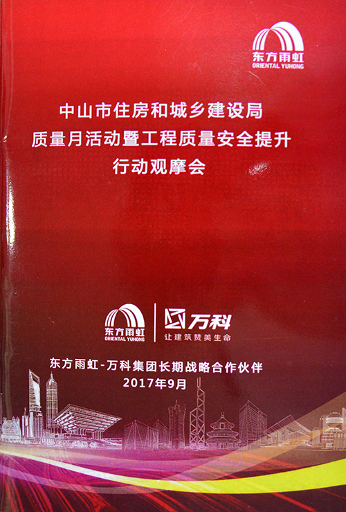 本次活動由中山市住房和城鄉建設局主辦,東鳳鎮人民政府協辦。中山市翠亨新區公共建設局、各鎮、區住建局、市質監站、施工監理單位、市工程勘察設計單位、中山市廣播電視臺、南方日報等相關單位約600余人參與活動。廣東東方雨虹作為現場優質防水系統服務商,受邀參加本次觀摩會。