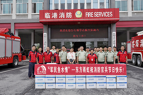 8月1日,在第90個(gè)建軍節(jié)來(lái)臨之時(shí),岳陽(yáng)東方雨虹廠長(zhǎng)助理陳桂福、王秀梅等一行人,前往岳陽(yáng)市公安消防支隊(duì)臨港中隊(duì)慰問(wèn)消防官兵,為他們送上了慰問(wèn)品并致以節(jié)日的祝福。