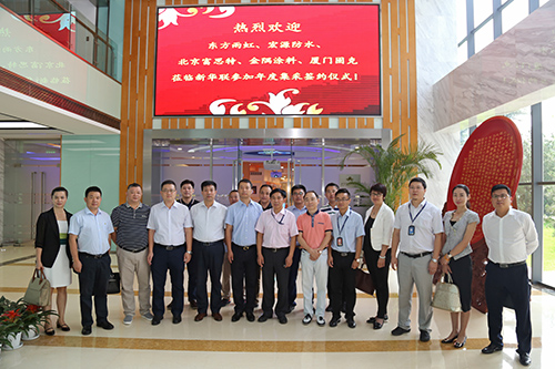 7月25日,新華聯文化旅游發展股份有限公司2017-2019年度防水和涂料集中采購簽約儀式在北京臺湖新華聯總部召開,包括東方雨虹在內的五家涂料和防水供應商代表受邀參加。新華聯集采中心總監彭建奇主持儀式,東方雨虹集團副總裁張洪濤參加簽約儀式并發言。