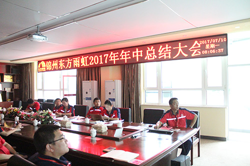 7月10日,錦州東方雨虹召開2017年上半年工作總結會議。廠長許朝暉主持會議并講話,各部門負責人參加了此次會議。   廠長許朝暉首先對生產基地上半年的生產運營情況進行了總結匯報,并強調安全生產是重中之重,同時分析了上半年工作中存在的不足,指出下半年工作思路。