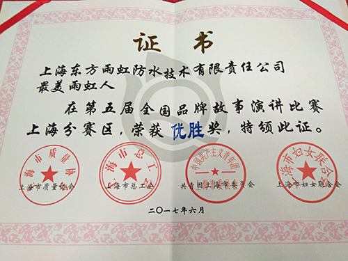 6月29日,為了進(jìn)一步推廣品牌觀念和品牌文化,提高上海品牌影響力,由工業(yè)和信息化部委托,中國(guó)質(zhì)量協(xié)會(huì)聯(lián)合上海市質(zhì)量協(xié)會(huì)、上海市總工會(huì)等主辦的第五屆全國(guó)品牌故事大賽(上海賽區(qū))在上海建工大廈召開(kāi)。上海市質(zhì)量協(xié)會(huì)會(huì)長(zhǎng)唐曉蓉、上海市政管理委員會(huì)辦公室副主任周赤出席了本次大會(huì)。上海東方雨虹榮獲了本屆大賽演講比賽優(yōu)勝獎(jiǎng)、征文比賽三等獎(jiǎng)。 本次比賽吸引了約40個(gè)單位,100多名代表到場(chǎng)。比賽品牌涉及面廣,既有來(lái)上海浦江飯店、上海郵政等傳統(tǒng)企業(yè);也有來(lái)自上海電氣電站集團(tuán)、中國(guó)商飛集團(tuán)等先進(jìn)制造業(yè)和現(xiàn)代服務(wù)業(yè)企業(yè)。作為防水行業(yè)的優(yōu)秀代表,上海東方雨虹也參加了本屆大賽。 賽場(chǎng)上,雨虹人通過(guò)講述身邊的真實(shí)故事,借助富有感染力的演講,傳遞出了東方雨虹全力為構(gòu)筑和諧人居貢獻(xiàn)力量,全面踐行“為人類為社會(huì)創(chuàng)造持久安全的環(huán)境”的企業(yè)使命。最終,榮獲本屆大賽演講比賽的優(yōu)勝獎(jiǎng)。