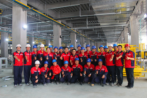 凝結(jié)了建設(shè)開發(fā)團(tuán)隊(duì)、車間全體員工、施工單位232天的辛勤汗水和付出,唐山聚氨酯防水涂料生產(chǎn)線比原定計(jì)劃開機(jī)時(shí)間提前半個(gè)月投產(chǎn)。這條生產(chǎn)線,是東方雨虹第二條聚氨酯防水涂料生產(chǎn)線,擁有29臺反應(yīng)釜、56臺儲罐&計(jì)量罐、4365個(gè)閥門、20000余米管線;配備多套獨(dú)立的真空系統(tǒng)、空壓站、冷卻水系統(tǒng)、冷凍水系統(tǒng)、制氮系統(tǒng)、粉料輸送系統(tǒng)和包括機(jī)械手在內(nèi)的6條全自動罐裝線,從上桶到尋口,到上蓋、貼標(biāo)、掃碼、碼垛、纏膜全過程自動化;熱能綜合利用,節(jié)能且節(jié)約成本;采用高性能SIEMENS S7-400CPU、18IO從站、2368點(diǎn)DI、1152點(diǎn)DO、424點(diǎn)AI、120點(diǎn)AO、多達(dá)19稱重系統(tǒng),70臺變頻電機(jī)驅(qū)動及大量普通驅(qū)動電機(jī);全方位控制溫度、液位、重量、壓力、真空、流量,通過十幾套順控流程精準(zhǔn)控制各產(chǎn)品線的生產(chǎn)工藝流程;而整條生產(chǎn)線的控制,僅需要12名工人。
