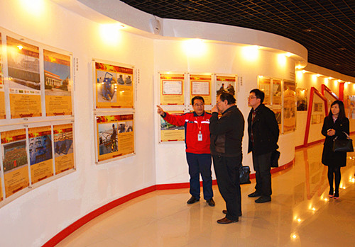 最后,來訪人員在東方雨虹上海生產基地廠長喻飛的陪同下,參觀了基地的展廳、生產車間。