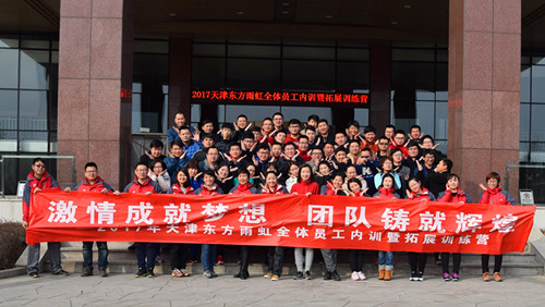 本次集訓主題為“激情成就夢想,團隊鑄就輝煌”,分為團隊拓展、課程培訓兩部分內容。集訓前,天津東方雨虹總經理文敬芳作動員講話,希望大家從這次集訓開始,開闊思路,集思廣益,大膽探索,勇于創新,在2017年擁抱機遇,大有作為。 集訓前兩日,由全員共同參與的團隊拓展活動豐富多彩,通過摸石過河、云中漫步、勇闖雷陣等拓展項目,充分激發了員工的個人潛能,增強了團隊成員的配合度和凝聚力,并使全員深刻領悟到:做任何工作要“謀定而后動,方能事半功倍”。