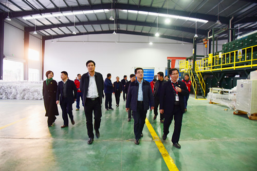 12月22日下午,岳陽市君山區區委常委、區長李勇,云溪區區委書記張中于,云溪區區長余良勇等考察岳陽東方雨虹。