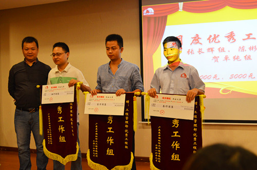 10月22日,以“矢志不移,奮力沖刺”為主題的廣東東方雨虹第三季度業(yè)務(wù)&工程表彰動(dòng)員大會(huì)在涵天酒店舉行。廣東東方雨虹常務(wù)副總經(jīng)理孫福琴、總工程師周子鵠、總經(jīng)理助理張舜苗、總經(jīng)理助理王超以及業(yè)務(wù)系統(tǒng)、工程系統(tǒng)共計(jì)100多名員工出席了此次會(huì)議。 為及時(shí)表彰績(jī)優(yōu)者,增強(qiáng)員工、團(tuán)隊(duì)榮譽(yù)感,傳遞正能量,本次會(huì)議頒發(fā)了業(yè)務(wù)系統(tǒng)優(yōu)秀銷(xiāo)售團(tuán)隊(duì)獎(jiǎng)、維護(hù)獎(jiǎng)、開(kāi)拓精英獎(jiǎng)及工程系統(tǒng)優(yōu)秀工程組獎(jiǎng)、施工管理精英獎(jiǎng)、施工回款獎(jiǎng)等6個(gè)獎(jiǎng)項(xiàng),共計(jì)4個(gè)優(yōu)秀團(tuán)隊(duì)、6位員工獲得了獎(jiǎng)勵(lì)。會(huì)上,常務(wù)副總經(jīng)理孫福琴和總工程師周子鵠結(jié)合表彰情況作動(dòng)員發(fā)言,表示業(yè)務(wù)工程不分家,兩大系統(tǒng)要換位思考,相互配合,與公司共成長(zhǎng)、同發(fā)展。
