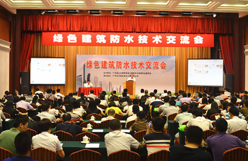 7月28日下午,綠色建筑防水技術交流會于廣東大廈國際會議廳舉行。此次交流會由廣東省土木建筑學會工程防水與加固專業委員會舉辦,廣東東方雨虹防水工程有限公司承辦。來自設計單位、工程監理、房地產開發、建筑施工、防水施工、建材科研和生產等單位的工程技術人員及相關人員共300余人參加了會議。 綠色和可持續發展是國家重視和發展的大方向,為了加快防水新興產業發展,走低能耗、高技術含量的綠色環保建筑防水發展之路,此次綠色建筑技術交流會特邀請國內防水行業的專家主講。中國建材檢驗認證集團蘇州有限公司副總經理、高級工程師朱志遠教授,以綠色建材和綠色建筑為主題,就綠色防水材料及其評判標準進行了闡述。廣州市設計院副總工程師張南寧從建筑設計的角度出發,講述了綠色建筑與建筑防水的關系。中國建筑第四工程局有限公司華南分公司高級工程師董立建則與在場嘉賓分享了電子商務中心項目的綠色施工經驗。廣東東方雨虹總工程師周子鵠博士,做了題為《改性瀝青防水材料綠色發展與應用》的演講,向大家介紹了東方雨虹改性瀝青防水系統綠化工作。 此次交流會還選出了廣東省土木建筑學會工程防水與加固專業委員會的標志。