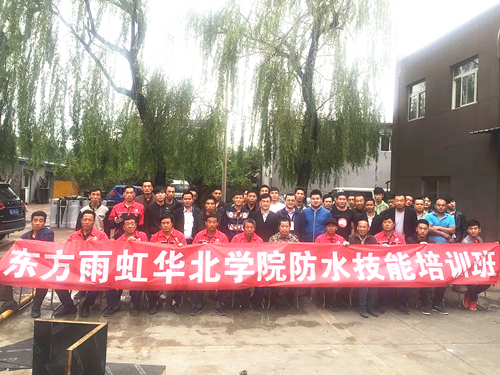 2016年5月10—12日,東方雨虹職業(yè)技術(shù)學(xué)院華北分院在順義羊房培訓(xùn)基地,如期舉行2016年第十一期防水施工技能培訓(xùn),來自東方雨虹50名防水施工工人和管理人員,參加了此次防水職業(yè)資格證書的培訓(xùn)。 在培訓(xùn)開班大會上,東方雨虹職業(yè)技術(shù)學(xué)院總院副院長彭作緒和華北分院副院長陳克豐作了開班致辭,并對防水工人未來的要求和此次培訓(xùn)要達到的標(biāo)準(zhǔn)提出了具體要求。在培訓(xùn)班班主任鐘友良等培訓(xùn)師的精心組織下,順利地完成了新一期的防水工人取證培訓(xùn)。本期培訓(xùn)期間,《中華建筑報》、《中國防水編輯部》等媒體相關(guān)負責(zé)人現(xiàn)場參觀考察并饒有興趣地親自動手體驗防水施工。
