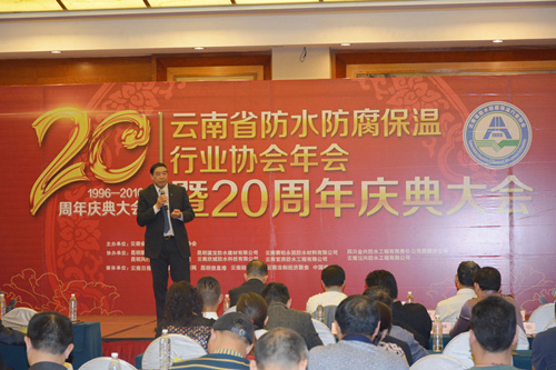 4月13日,云南省防水防腐保溫行業(yè)協(xié)會(huì)2015年年會(huì)暨二十周年慶典大會(huì)在昆明世紀(jì)金源大酒店隆重舉行,中國(guó)建筑防水協(xié)會(huì)、云南建設(shè)廳、云南省質(zhì)量監(jiān)督局等部門領(lǐng)導(dǎo)、協(xié)會(huì)領(lǐng)導(dǎo)及企業(yè)家共計(jì)200余人參加。