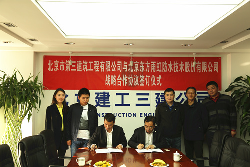 3月24日下午,東方雨虹與北京市第三建筑工程有限公司簽訂戰(zhàn)略合作協(xié)議。 簽約儀式上,東方雨虹北京公司總經(jīng)理張洪濤、北京第三建筑工程有限公司總經(jīng)理常永春作為雙方代表,共同表達(dá)了建立長久合作的良好愿望,言語間流露出彼此合作的誠意與信任,并且希望通過搭建合作平臺(tái)做到更深遠(yuǎn)更廣泛的合作交流,從而達(dá)到合作共贏的新層次。