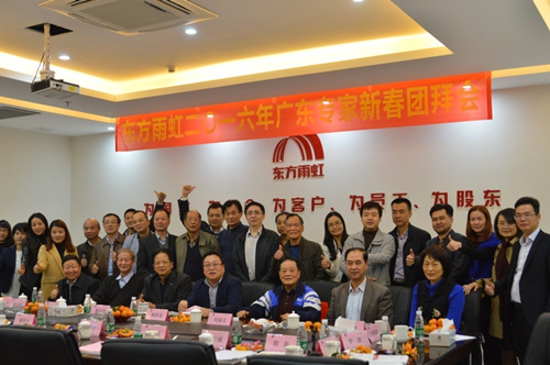 1月9日,廣東東方雨虹在深圳召開2016年新春專家團拜會,來自廣東省防水專家委員會、深圳防水專家委員會、深圳市勘察設(shè)計行業(yè)協(xié)會等20余名專家共聚一堂,共同探討防水行業(yè)現(xiàn)狀,為行業(yè)的健康發(fā)展建言獻策。廣東東方雨虹董事長楊浩成、常務(wù)副總經(jīng)理孫福琴、副總經(jīng)理盧了君、總工程師周子鵠、市場部經(jīng)理余佩賢以及深圳東方雨虹常務(wù)副總經(jīng)理歐磊、總工程師吳光文、總經(jīng)理助理韓麗娟等出席了會議。 會議伊始,廣東東方雨虹董事長楊浩成先生向與會嘉賓介紹了2015年廣東公司取得的成績與公司下一個五年規(guī)劃,同時也表示新經(jīng)濟常態(tài)下防水行業(yè)存在很多的機遇與挑戰(zhàn),希望能與在座專家共同促進整個行業(yè)健康發(fā)展。