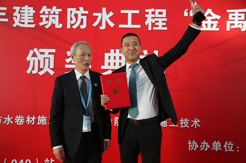 東方雨虹TPO單層屋面事業(yè)部總經(jīng)理王宏代表公司領(lǐng)取“金禹獎(jiǎng)”金獎(jiǎng)