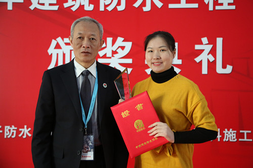 上海東方雨虹經(jīng)濟(jì)技術(shù)部總工助理張嬋代表公司領(lǐng)取“金禹獎(jiǎng)”金獎(jiǎng)