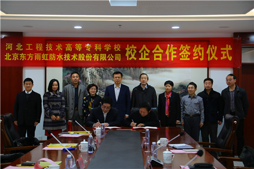 11月17日,東方雨虹與河北水利電力學(xué)院(現(xiàn)河北工程技術(shù)高等專(zhuān)科學(xué)校)簽署聯(lián)合培養(yǎng)項(xiàng)目意向書(shū),未來(lái),東方雨虹將與校方在建筑防水、保溫等職業(yè)化教育領(lǐng)域開(kāi)展合作,探索理論與實(shí)踐相結(jié)合的教學(xué)模式,創(chuàng)新校企合作、中西結(jié)合的教學(xué)方法,雙方優(yōu)勢(shì)互補(bǔ),力圖成為中國(guó)建筑防水、保溫領(lǐng)域職業(yè)化教育的成功典范。 簽約儀式上,河北水利電力學(xué)院(現(xiàn)河北工程技術(shù)高等專(zhuān)科學(xué)校)黨委書(shū)記蘭耀東首先致歡迎辭,對(duì)于學(xué)校的現(xiàn)狀進(jìn)行了詳細(xì)的介紹:學(xué)校始建于1952年,多年來(lái)經(jīng)過(guò)不斷拼搏發(fā)展,于2015年10月16日,通過(guò)專(zhuān)家評(píng)定,升為本科院校。未來(lái),學(xué)校將建設(shè)成為行業(yè)特色鮮明、學(xué)科特色突出的應(yīng)用技術(shù)型本科院校。與東方雨虹的校企合作,將為學(xué)校人才發(fā)展注入新的活力,學(xué)校也會(huì)進(jìn)一步強(qiáng)化專(zhuān)業(yè)培訓(xùn)與實(shí)踐教學(xué)的針對(duì)性,設(shè)計(jì)符合企業(yè)需求的教學(xué)方案,培養(yǎng)更多創(chuàng)新型、實(shí)用型人才。
