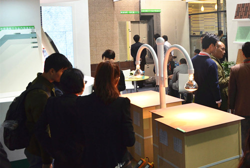 與普通涂料相比,使得表面溫度相差15℃以上的反射隔熱涂料溫差測試模擬裝置也吸引眾多展客現場咨詢。   眾所周知,反射隔熱涂料產品針對的華南市場“隔熱”需求多于“保溫”,并且臥牛山公司通過技術研發,不只是推出單一的白色反射隔熱涂料,而是能夠做出非常豐富的顏色,達到一定的裝飾功能。臥牛山未來也將會推出更多適應住宅建筑的反射隔熱涂料產品。