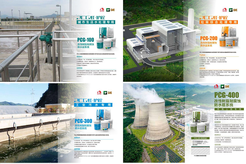 PCG改性樹脂防水防腐系統是PCG防護層與混凝土結構能夠持久有效地協同工作,對化學介質、氣體、蒸汽的滲透性小,難以引起水蒸氣擴散現象;常溫固化反應,分散性好,粘結面殘余應力小,固化時收縮低;系統構造,物理力學性能穩定,具有良好的耐腐性能、耐刮擦性能、耐濕性能。