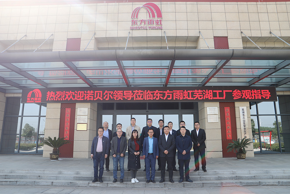 蕪湖東方雨虹廠長曹雪詳細介紹了產業園的建設、市場拓展情況。諾貝爾瓷磚團隊充分肯定和贊賞了東方雨虹的產品、質量、服務,同時深入蕪湖東方雨虹生產現場參觀,了解東方雨虹的自動化的智能制造水平、精細化的生產操作。