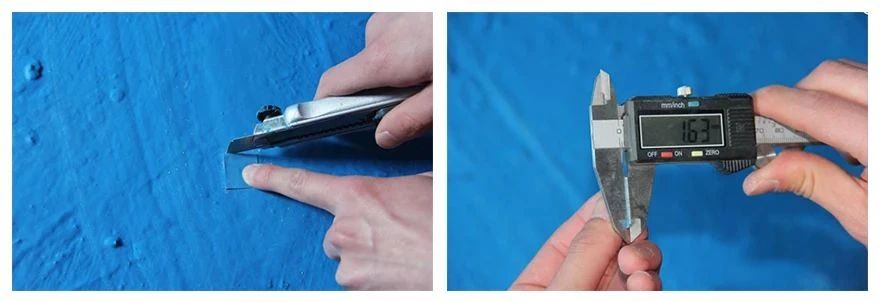 ·同時,用游標卡尺或測厚儀測量切塊的防水涂膜厚度;
